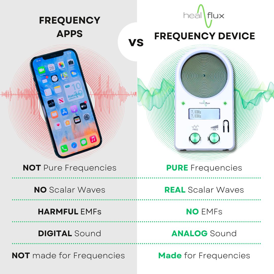 Generate custom frequencies to support wellbeing. This device generates pure Sine Wave frequencies as Sound & Scalar Waves between 0.01 - 500,000Hz that are more powerful than any phone or app for: