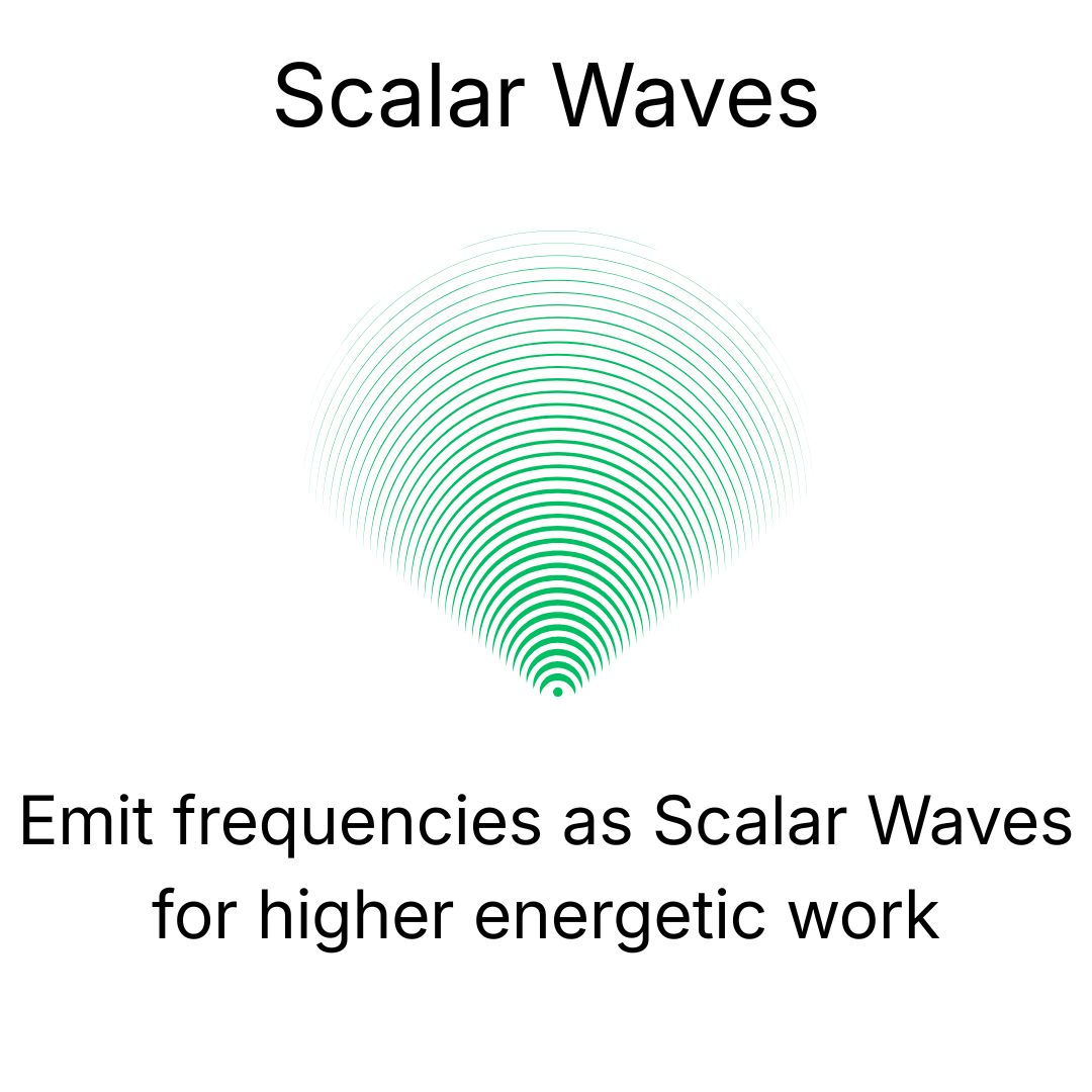 The device generates any frequency you want as pure vibrational sound waves (Sine Waves) and Scalar waves (no sound) with a radius of up to 10 feet.